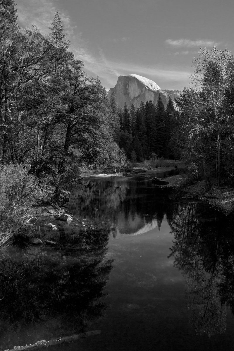 B&W View of Half Dome over the Merced
